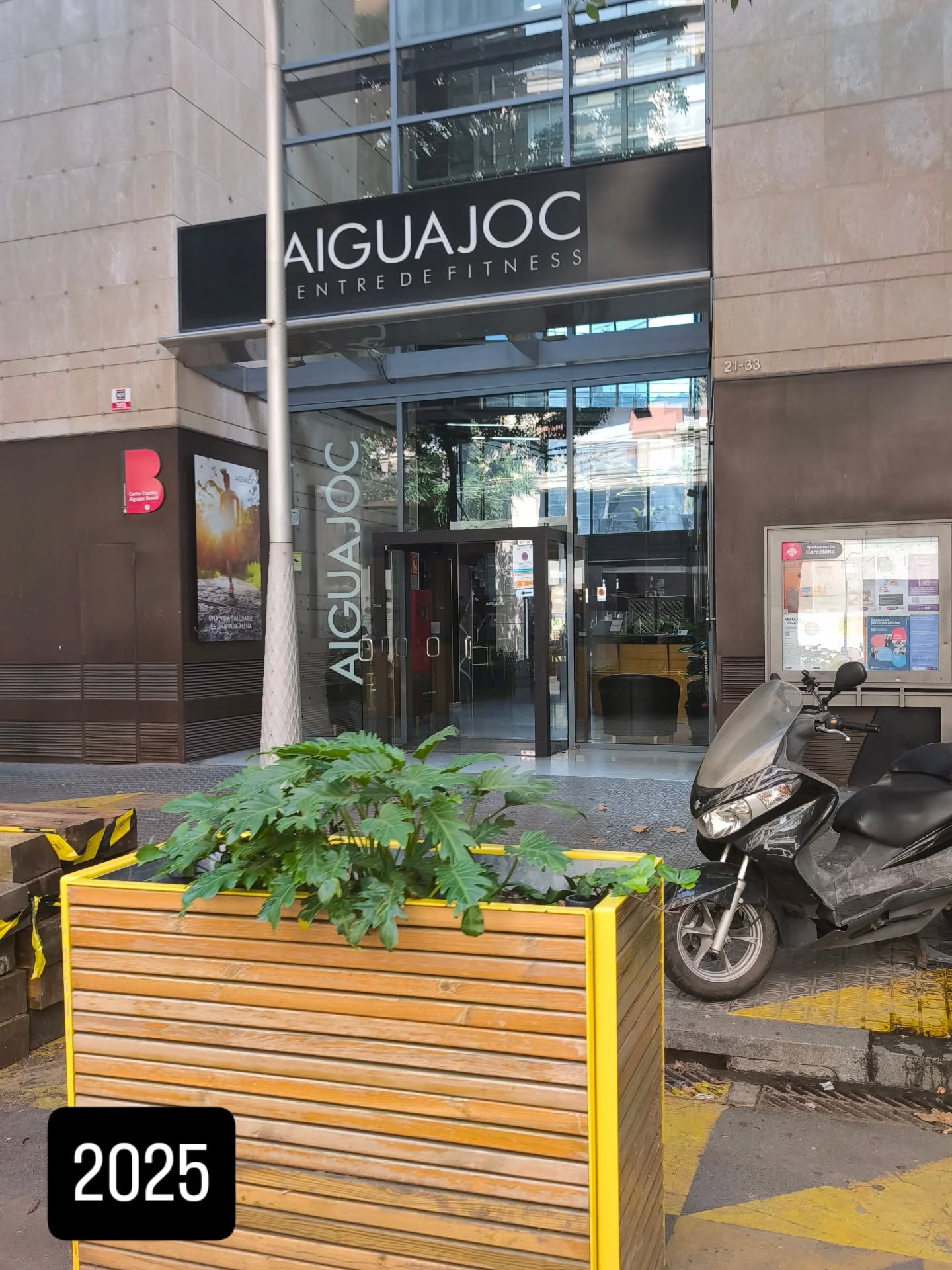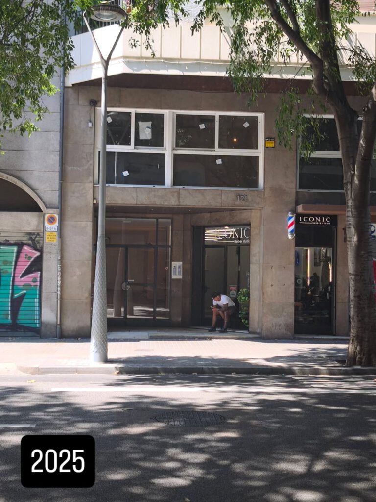 Ich gehe weiter, Richtung Süden. Durch ein Viertel, das sich poliert und teurer gemacht hat, wie alle Viertel, die irgendjemand irgendwann einmal geliebt hat. Vorbei am Mercat Sant Antoni. Und dann, Carrer Comte Borrell 21: das Aiguajoc. Noch da. Für die Anmeldung brauchte man damals ein spanisches Konto – nicht für die Miete, nicht für die Uni, sondern nur damit dieses Fitnessstudio den Monatsbeitrag abbuchen konnte. In der Nähe gab es eine Filiale der Deutschen Bank. Die Angestellten sagten „De-utsche Bank“ – als wäre es in ihrer Sprache ein ganz normales Wort.