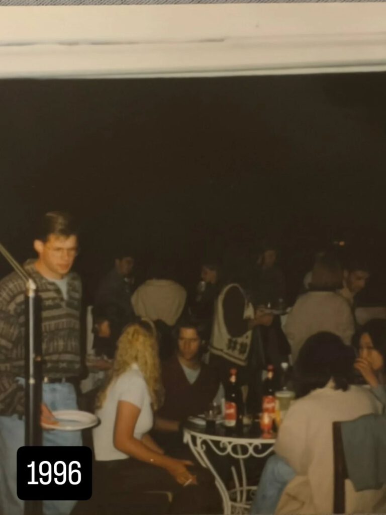 Die Abschiedsparty auf der Terrasse existiert noch als Foto. Das Licht war schlecht, die Stimmung gut.