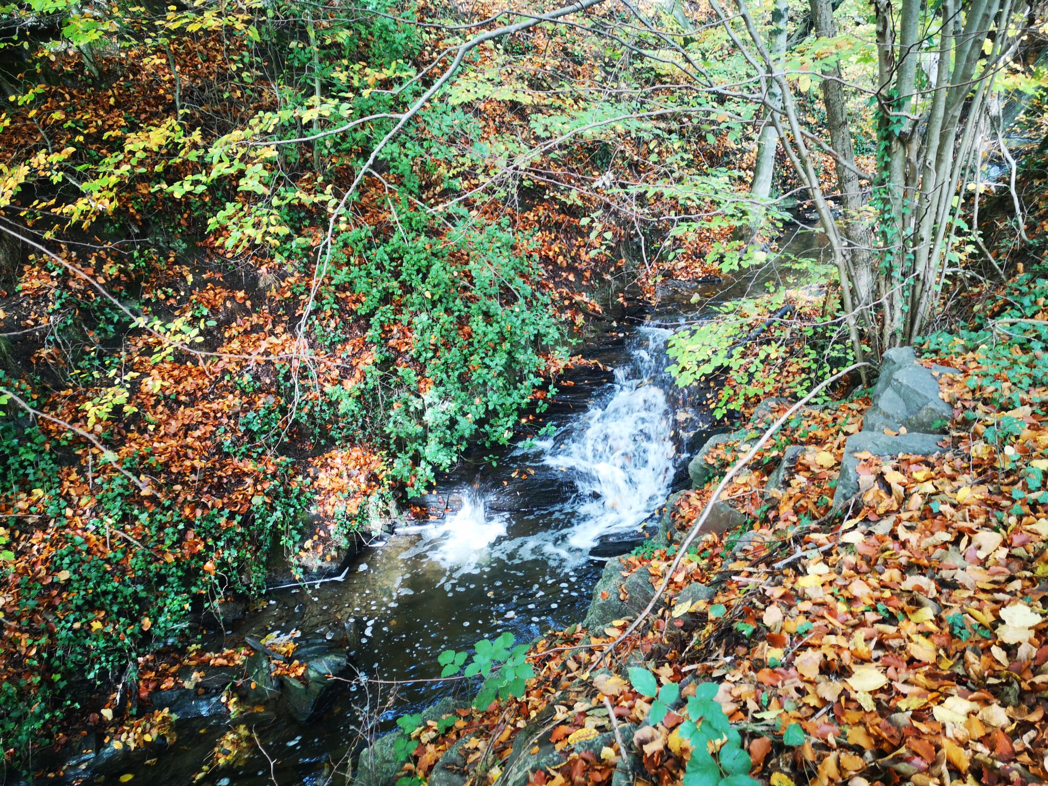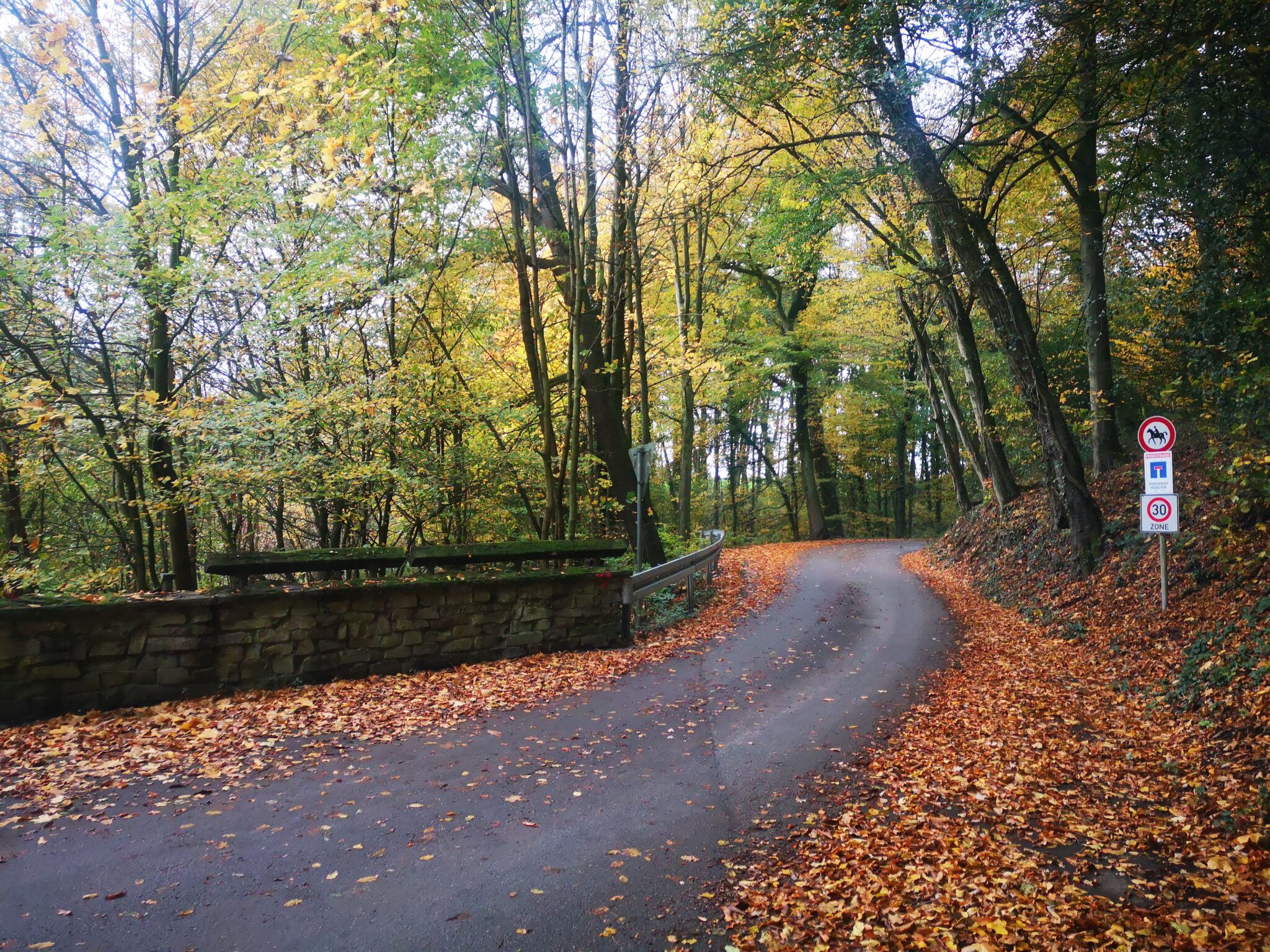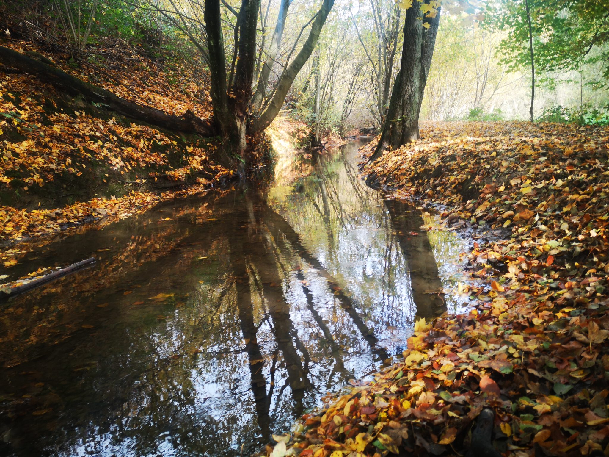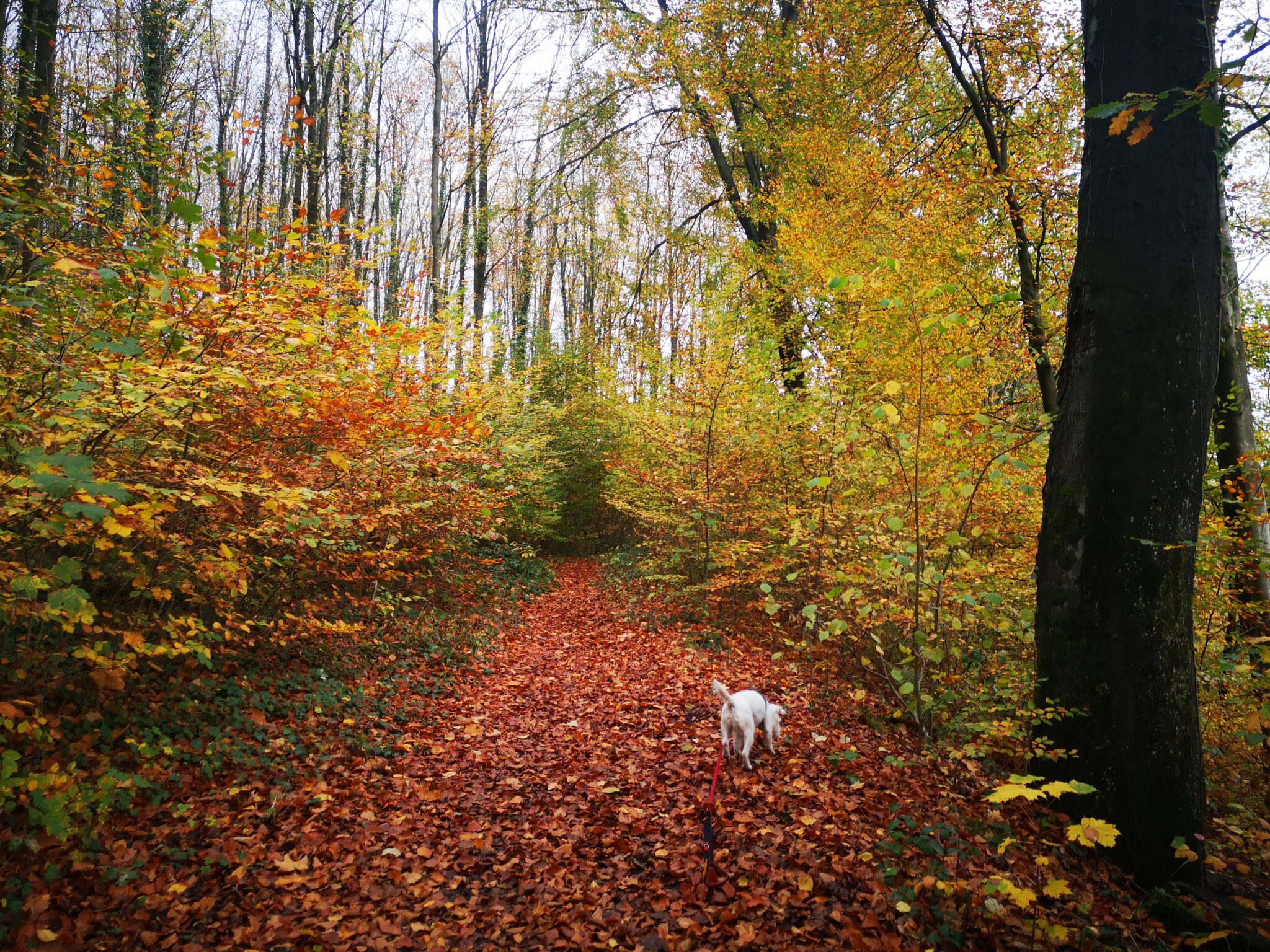 Wie auf den Fotos zu sehen, ist heute ein „Indian-Summer-Tag“. Die Sonne bricht durchs Bäumedach, belichtet das Laub, und durch das Laub ist alles erleuchtet, irgendwie. Goldener Herbst.