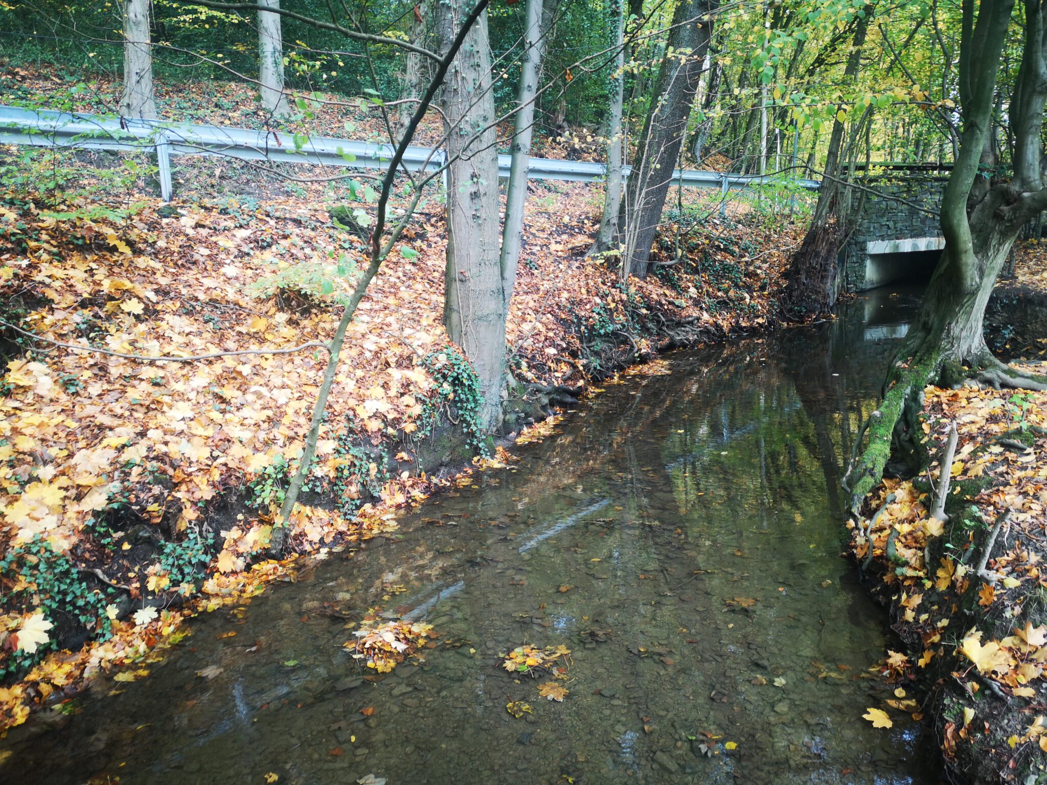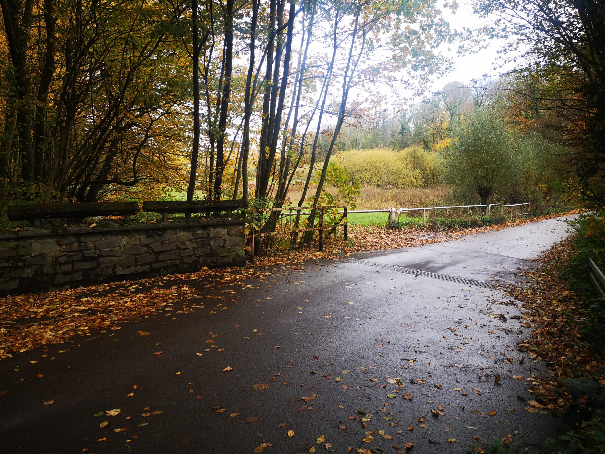 Für einen Klinik-Abstecher bleibt keine Zeit, weiter also an der Düssel entlang, diesmal verläuft der Weg am linken Ufer und steigt leicht an.