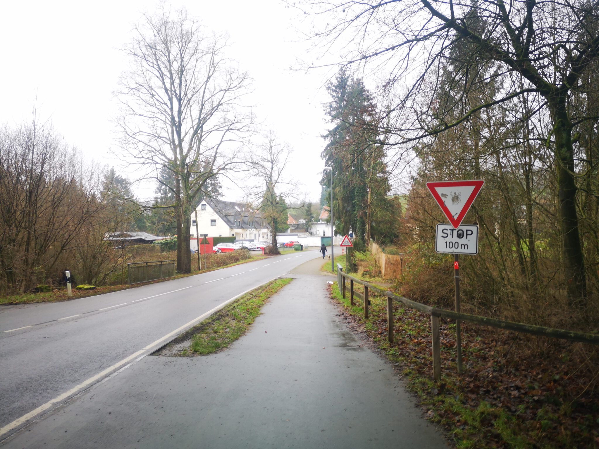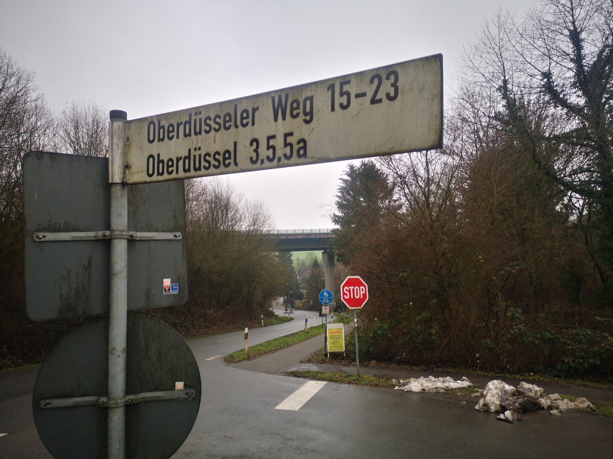 Den Unter-der-Brücke-Weg ausprobieren oder durch den Ort spazieren? Wir entscheiden uns für die zweite Variante, folgen dem Oberdüsseler Weg bis zur Abbiegung in die Landstraße und halten uns auf Höhe der Tankstelle rechts.