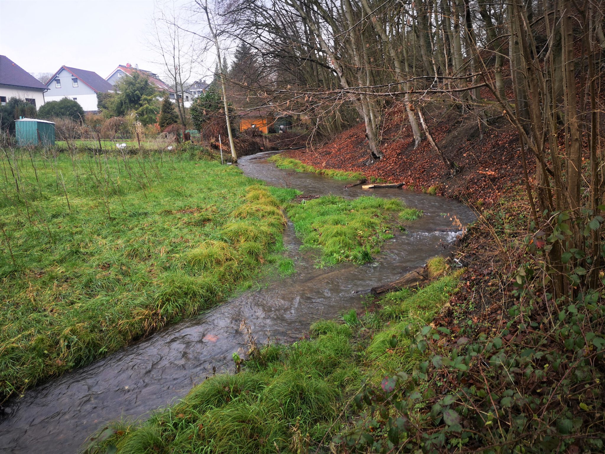Die nächste Diskussion: Am linken Düsselufer beginnt ein kleiner Weg.