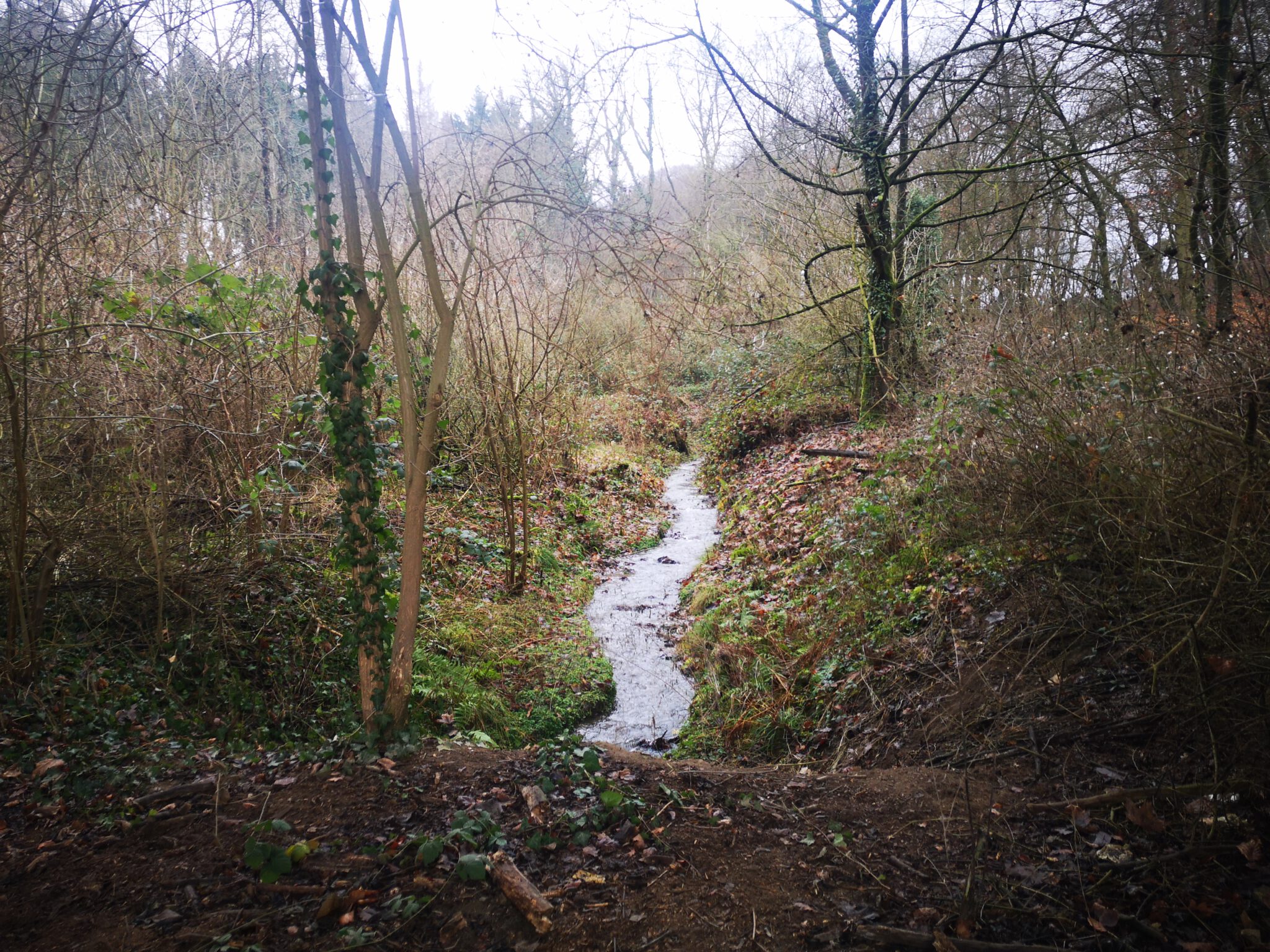 P. behält recht, aber immerhin können wir ein paar Düssel-Fotos machen und identifizieren einen namelosen Seitenbach, der unser Flüsschen mit frischem Wasser versorgt.
