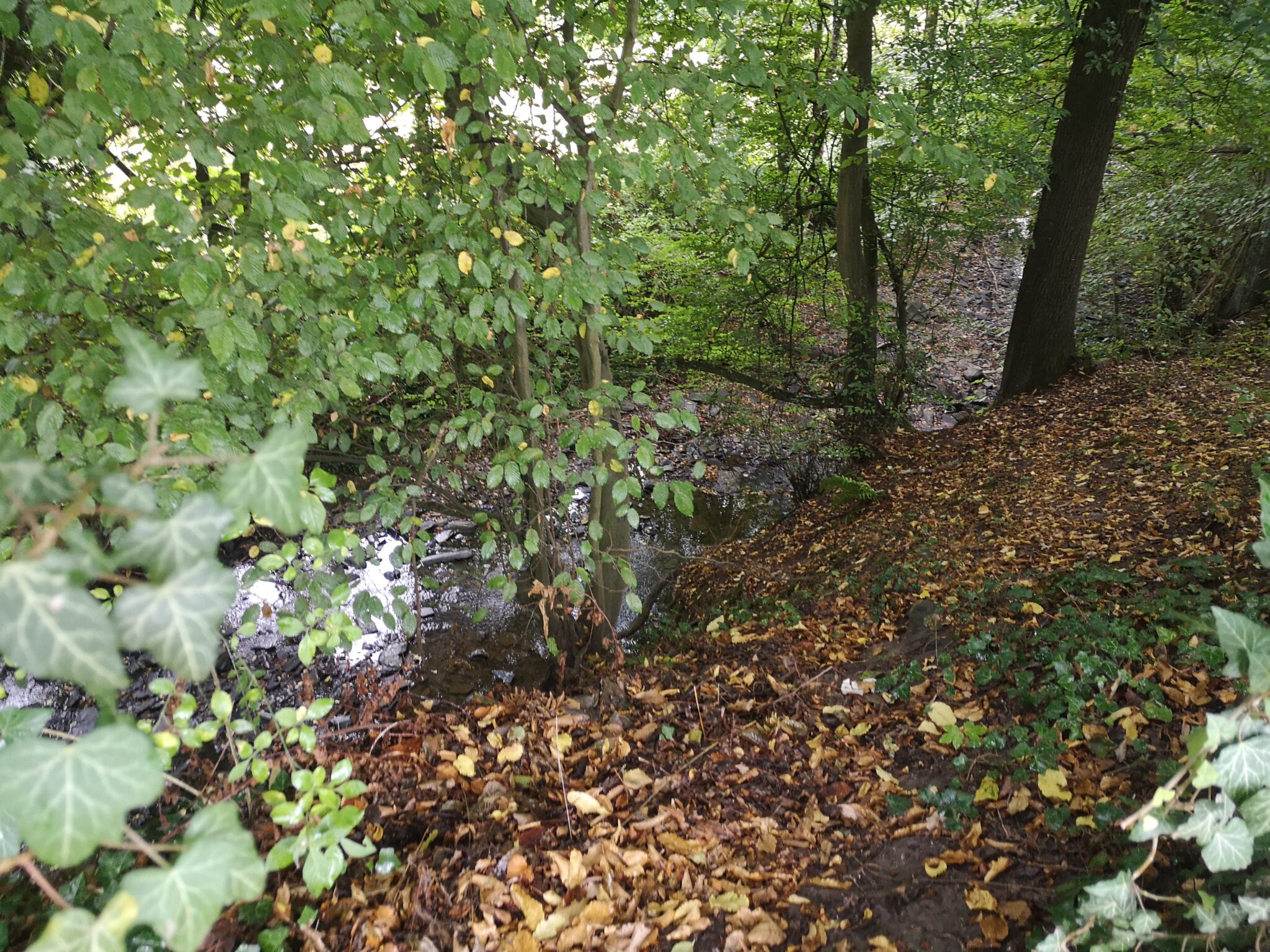 Auch heute ist wieder so ein Tag, das wird schon bei der Vorab-„Besichtigung“ der geplanten Strecke auf Google Maps klar: Da, wo wir die Düssel beim letzten Besuch verließen, können wir ihrem Ufer nicht folgen. Also sparen wir uns die 200 bis 300 Meter und parken an der Dornaper Straße/Höhe Dorfermühlenweg. Direkt in Wülfrath-Düssel also, dem einzigen Ortsteil der Welt, der nach Deutschlands bekanntestem unbekannten Fluss benannt ist.