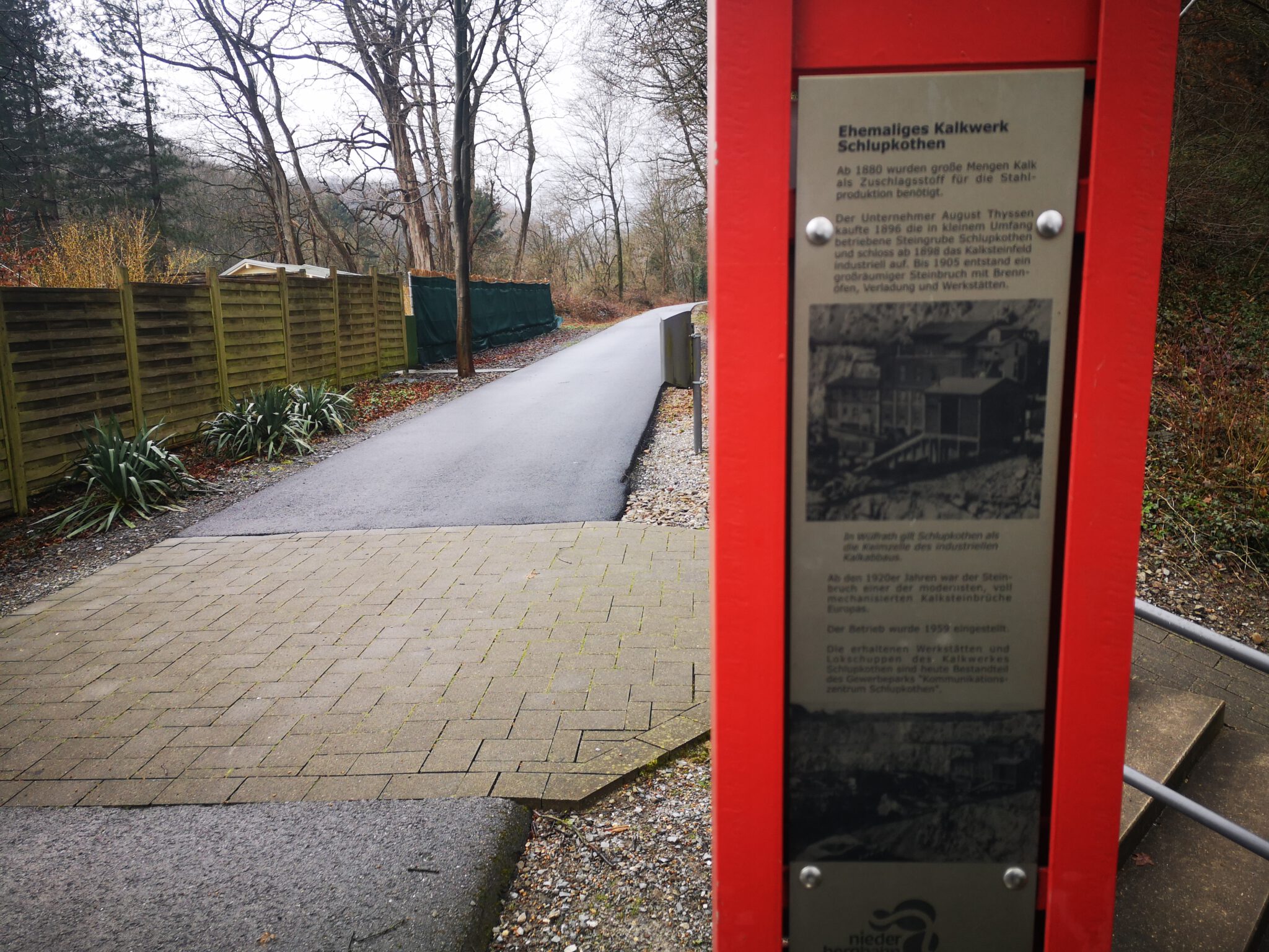 Wir erreichen das ehemalige von August Thyssen gegründete Kalkwerk Schlupkothen mit seiner „Kathedrale“, in dem heute ein Kommunikations-Center untergebracht ist. Normalerweise finden hier Konzerte und Kulturveranstaltungen statt.